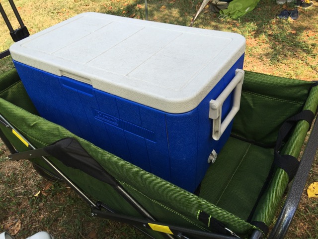 もちろん子供たち遊び道具としても大活躍ですが、「クーラーボックスを積んだままにしておく」とと、サイト内のいろんな場所に重いクーラーが移動して使えるので、とても便利なのです。