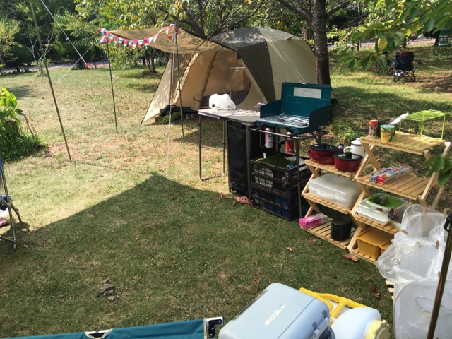 そのほかにもタープ、テーブル、チェア、クーラー、ガスコンロなどなど、たくさんのものを設営をしなくてはいなりません。